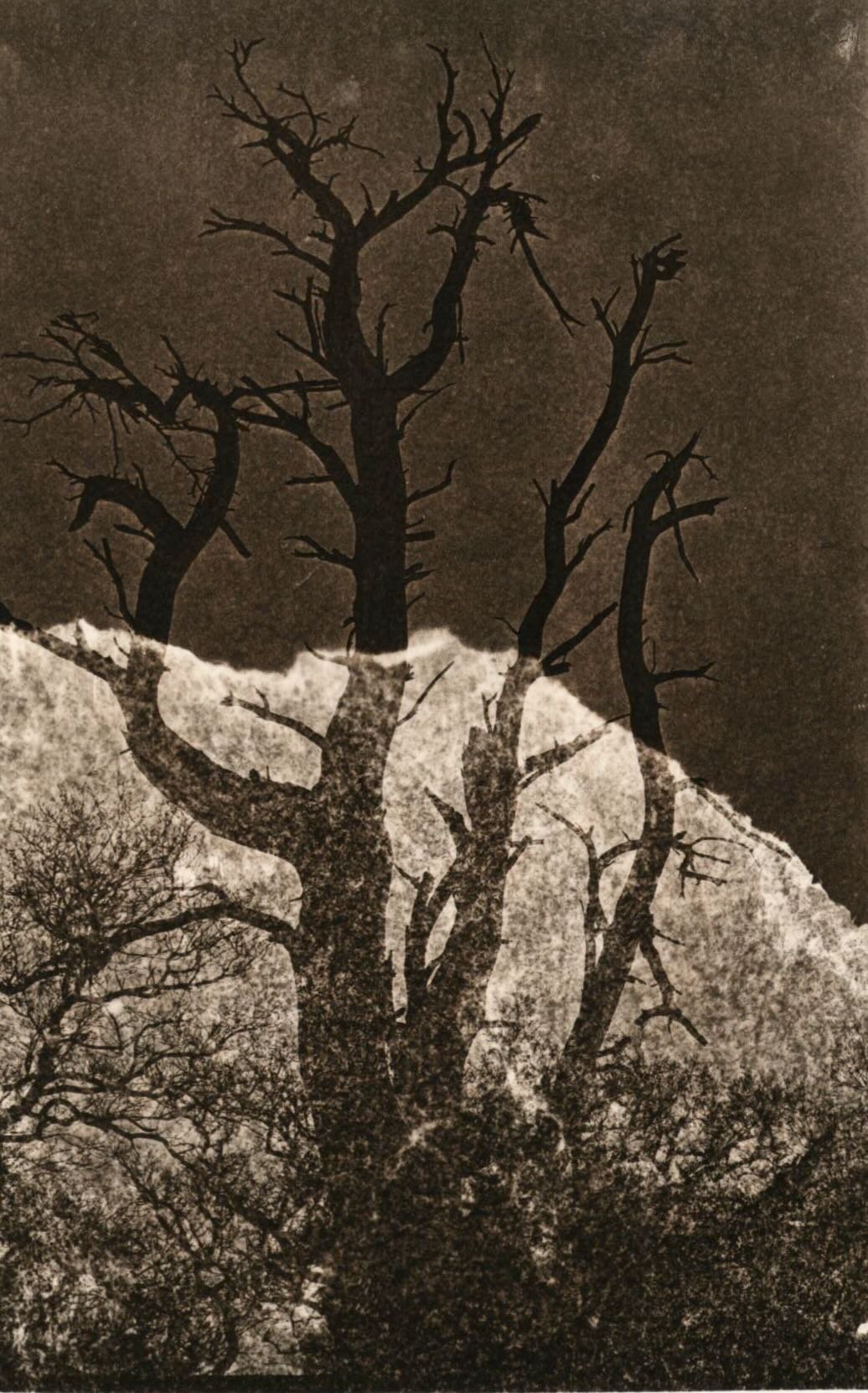 ‘Old brown’ LITH print with tissue paper photogram